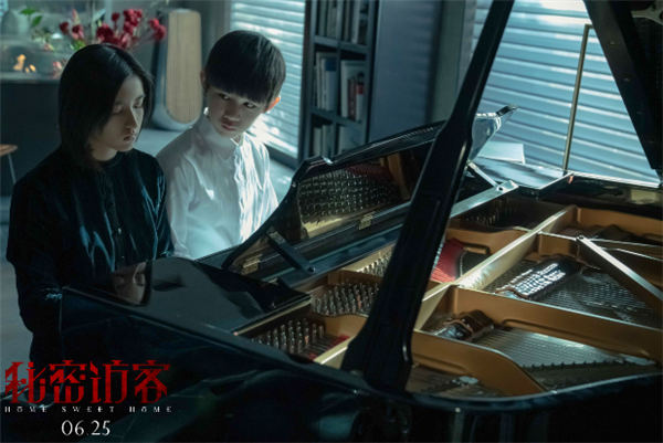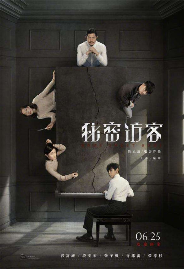 与此同时,影片也首次曝光一组极具故事感的剧照:五大主演“眼神戏”十足,神情中更暗含不少隐情,一股暗潮汹涌的较量似乎正悄然来袭。“神秘访客”段奕宏在“父亲”郭富城面前时惶恐不安,却能与喜欢画画的“姐姐”张子枫促膝长谈,他的真正身份到底是什么?在餐桌上被“父亲”温柔照料的“母亲”许玮甯,心事重重眉眼低垂,夫妻关系似有嫌隙。而“姐姐”张子枫为何与“弟弟”荣梓杉四手联弹时十分冷漠?一家四口与陌生访客之间错综复杂的关系,更显扑朔迷离。海报上一句”欢迎回家”在做足悬疑气氛之余,也让观众对这一家人发生的故事充满好奇。