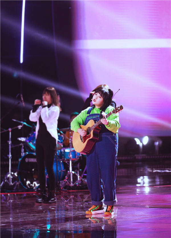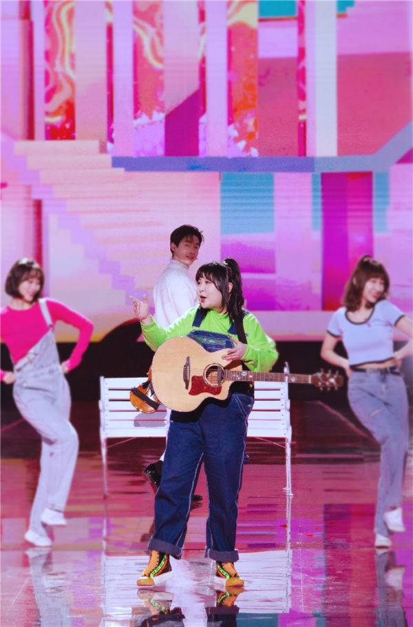 新锐歌手王七七首登央视网络春晚,与“大华”刘宪华合作节目“嗨唱正能量”。作为串联起整档节目的核心人物,刘宪华开场以一段惊艳的小提琴独奏拉开序幕,而后,王七七身着绿色T恤和藏蓝色背带裤从舞台黑暗处现身,一把吉他自弹自唱,“未见其人先闻其声”,欢快的旋律和伴舞们的舞蹈相呼应,尽显青春活力。一同表演的还有抖音舞蹈达人“小霸王”、《骑上我心爱的小摩托》原唱静sir父子以及曾经惊艳法国街头的《西游记》主题曲《云宫迅音》的表演者,四段歌曲表演通过剧情讲述串联在一起,各有千秋的“拿手好戏”与正能量的故事相呼应,既有欢笑和热闹,又在欢笑热闹之中传递着最真挚的祝福和希冀。