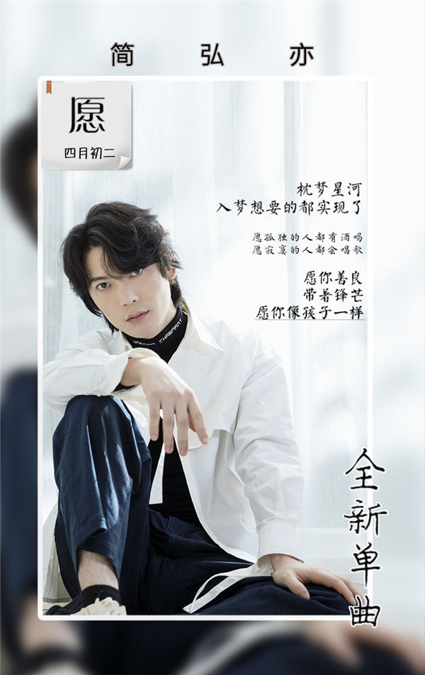孤独有酒,歌伴寂寞,善良但带着锋芒,一首《愿》带大家认识了新的简弘亦,这一《愿》后,不祝大家一帆风顺,祝大家乘风破浪!