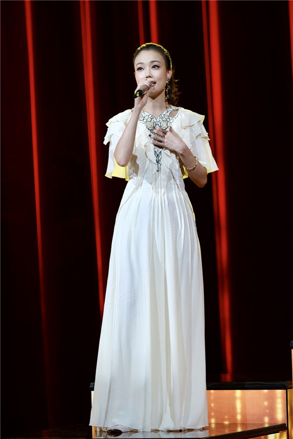 伴随着前奏推进,身着白色雪纺落地长裙的容祖儿缓缓发声领唱歌曲。她的演唱情感真挚、歌声婉转悠扬。当歌曲进入合唱部分时,群声骤响,歌声如春风拂过,温暖与感动随音符一同流入人们心间。容祖儿站在舞台中央,用音乐传递她对在疫情中为抗疫辛苦付出的医务工作者的敬意,用歌声答谢他们的奉献。