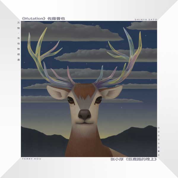 张小厚的创作理念与艺术家佐藤晋也不谋而合。这位艺术家在作品《Mutation》中,画下一只拥有彩色斑驳的角的鹿。画面中的鹿角,带着神圣的光芒,象征着人类眼前的大自然。这位艺术家说:“人类需要敬畏之心,回归之心,当鹿角蜕变成彩虹色时,人与自然的关系也更为纯粹。”