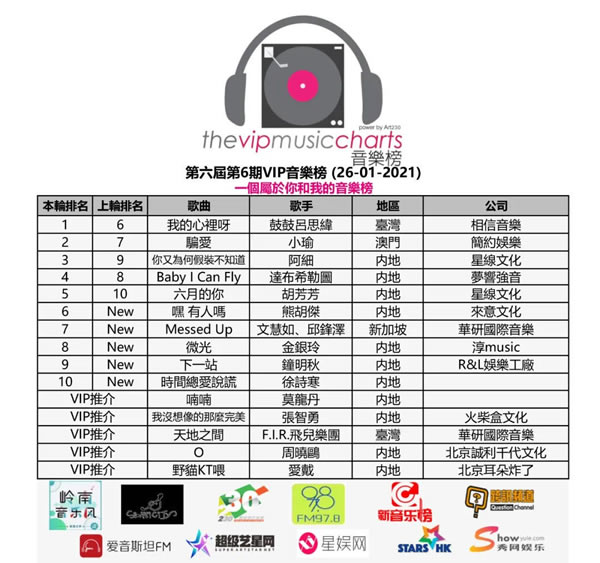 第六届VIP音乐榜第6期歌曲排行 一个属于你和我的音乐榜
