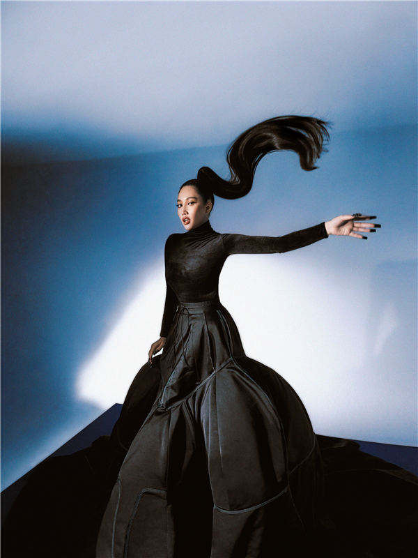 时隔四年即将再次发片,霸气回归的A-Lin一口气公布两款全新造型,都是她之前没有尝试过的Look,她在创意总监的建议下,勇敢跨出舒适圈,启用从未合作过的新生代团队,第一次合作,A-Lin非常开放地请新团队尽情发挥、不用设限,且一切都是新尝试的新鲜与刺激,让她在拍摄前一天兴奋到失眠。而现在的A-Lin比以前更有自信,在镜头前也更放松,拍完第一组照片,她看着手机里的自拍照非常开心,一直忍不住发出“今天我好美”的赞叹声,还马上传给黄妈妈看,与家人分享,妈妈也第一时间回讯息说“很时髦、很有国际感”,让她十分开心。而当天她穿上时尚界热门新锐品牌「WINDOWSEN」的黑色大裙摆礼服搭配高扎马尾的高冷造型,气势万千,工作人员发现她的神情与韩国潮牌「AMBUSH」设计师YOON有姐妹脸,让她惊讶之余也倍感荣幸;再加上今天首次曝光的亮蓝色礼服,飘逸的线条感,同样衬托出A-Lin的成熟女性韵味,工作人员笑说A-Lin一直展现出“阿美族YOON”的神韵,还有美国名媛模特儿金卡戴珊的气场,被封“大安区Kim”,让A-Lin心情大好,嚷着好想写歌,并全程嘴角上扬的完成拍摄。