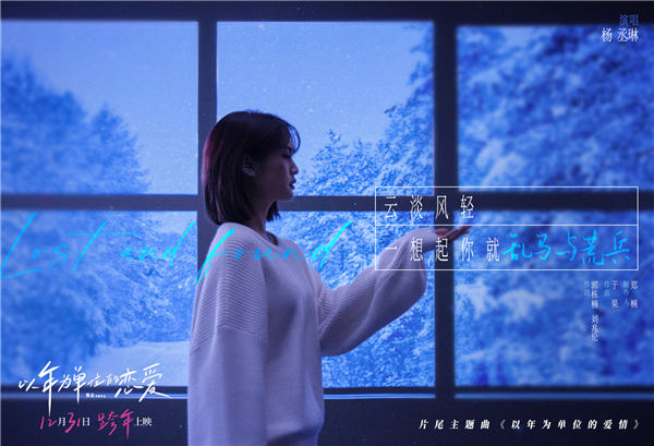 电影《以年为单位的恋爱》片尾主题曲《以年为单位的爱情》由郭栋楠、刘兆伦作词,于果作曲,金牌制作人郑楠倾力打造。这是继《删·拾以后》之后,全能天后杨丞琳暌违多年重回华语乐坛的最新力作。