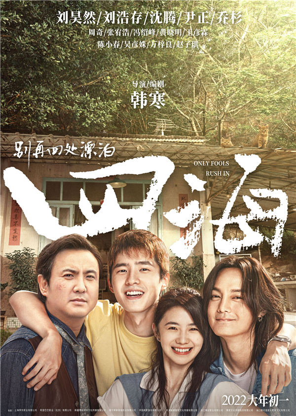 电影《四海》由刘昊然、刘浩存、沈腾、尹正、乔杉、周奇、王彦霖主演,黄晓明、张宥浩、陈小春、万梓良、吴彦姝、赵子琪、高华阳特别出演,冯绍峰友情出演,将于2022年大年初一全国公映。