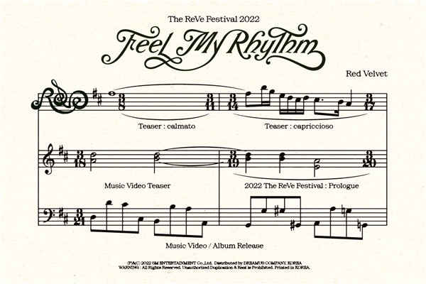 据悉,在3月6日晚23点(北京时间)通过Red Velvet各大SNS官方账号公开的日程海报中,包含了与新迷你专辑《The ReVe Festival 2022 - Feel My Rhythm》相关的公开丰富多彩内容的日程,增加了回归的期待感。