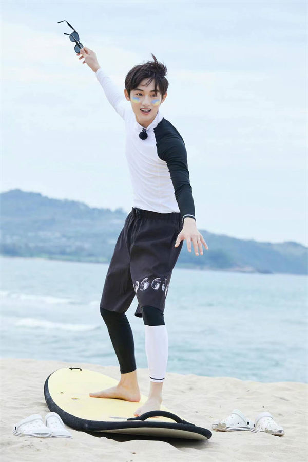 本期节目开播前,董思成便在微博透露“来到海南怎么能不冲个浪呢?”,节目中他果然在碧海蓝天下体验畅游浪尖的冲浪运动,开始时连续落水,可反复练习后成功拿捏住冲浪技巧,顺利上板并做了个爱心pose,但架不住帅不过三秒,再次落水引发现场爆笑。在“追夕阳的人”前往海边时,董思成戴着墨镜驾车一改往日可爱忙内形象秒变酷哥,从小习舞的他还在沙滩上为追星团带来了落日版现代舞,在夕阳照耀的橘色海边婆娑起舞,令人赏心悦目。