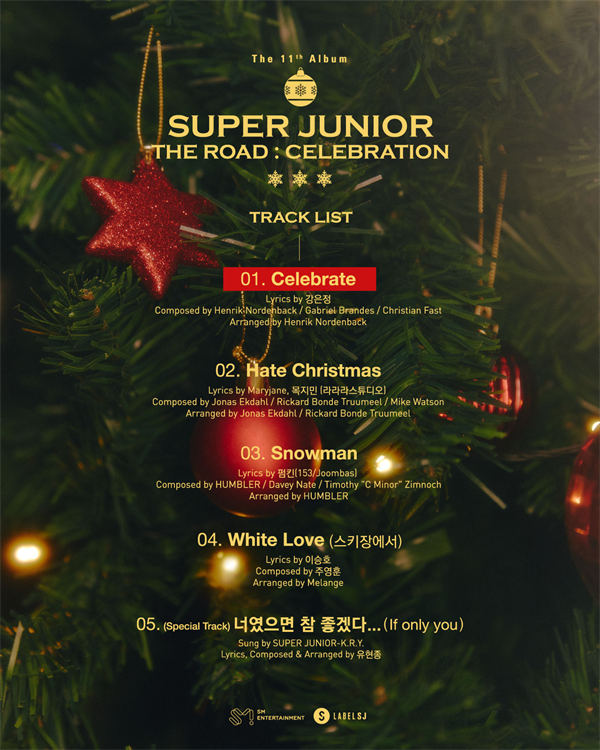 秀网娱乐讯,SUPER JUNIOR在12月2日上午10点(北京时间)通过官方SNS账号公开了正规11辑Vol.2《The Road : Celebration》的新曲名和包含Credit的曲目列表图片。