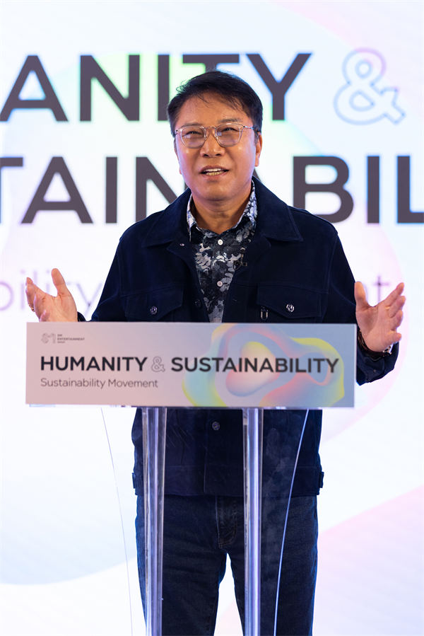 紧接着,李秀满总制作人说道:“但是现在是为了更好的未来而进行挑战的时期,现在为了人类的人道主义和地球的可持续性,我认为应该和全世界人们抱有共同的梦想。尤其要具有拯救地球,保护我们家园的迫切感,因为现在是所有人都要克服地球上的气候危机,实现可持续性的碳中和时代。可持续的未来成为了人类共同的议程,我们所有人,国际社会最大的共同目标,UN的Global Goals,应该把持续发展落实到日常文化、日常文化生态系统中去。还有为了地球可持续性,为了Sustainability的Net Zero,即现在我们应该共同参与零碳排放的发展蓝图。特别是为了实现地球的可持续性,必须要努力防止沙漠化,我希望通过全世界所有人都能愉快参与的‘植树’,防止碳排放和沙漠化,创造更好的地球。”