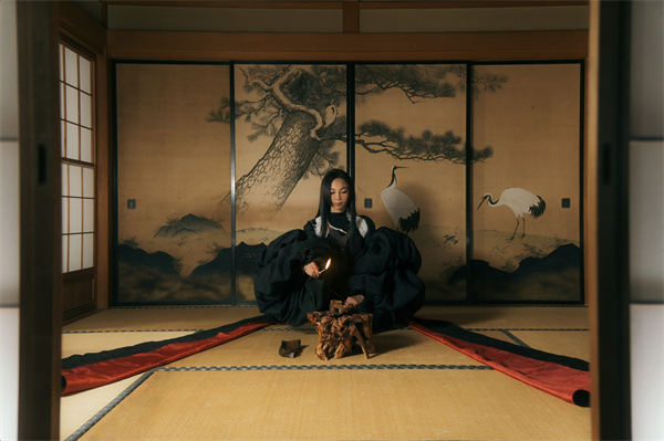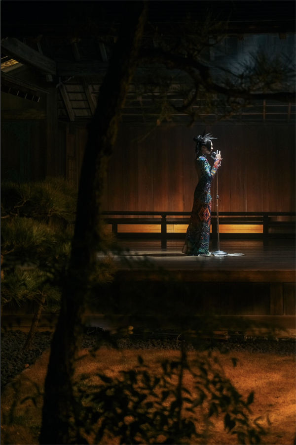 AGA穿上香港著名时装设计师Kev Yiu的作品,穿上用了超过100,000颗水晶点缀,营造出闪亮幻彩迷幻电子图案的贴身长裙,于日本过百年历史的传统歌舞伎舞台上表演 ,散发歌姬魅力,意态迷人。另一个场境是透出水影的古老日式和室,AGA穿上另一套Kev Yiu特别为她度身订造的日式和服斗篷, 配搭仙鹤刺绣连衣裤翩翩起舞,突破自我。