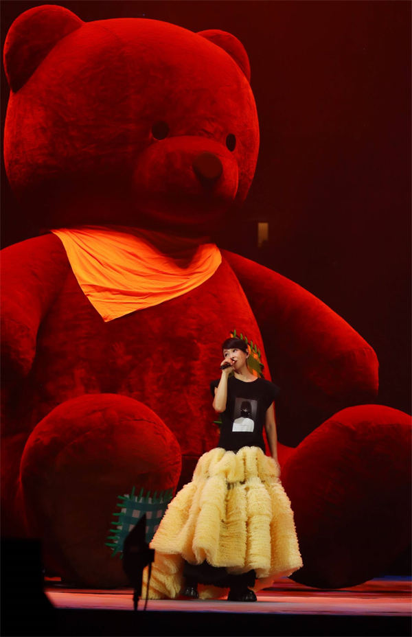 刘若英“2023飞行日巡回演唱会”不止是一场演唱会,更是一场脍炙人口音乐、听觉美学与精致视效所构成的感官飨宴!此次也是刘若英第一次将四面台演唱会带到深圳,豪华舞美突破距离的阻碍完整搬运,飞天鲸鱼和五米高巨型爱的抱抱熊坐落场馆,反地心引力失根旋木、环环相扣极光天台、360度零死角旋转舞台,满满的奇幻惊喜令现场观众惊艳并震撼不已。豪华歌单更是狠狠戳中歌迷的泪点,首首大合唱,句句有和声,不仅有大家都耳熟能详的经典曲目《为爱痴狂》、《一辈子的孤单》、《原来你也在这里》、《成全》、《后来》等, 更有之前在网络上歌迷呼声很高的《听说》、《爱的代价》等不常出现在演唱会歌单上的“冷门”曲目,前奏响起让在场观众呼声此起彼伏,爆发出感动的掌声。
