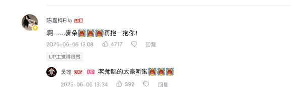 用Hito颁奖礼的奖项和超燃舞台为六月收官,回顾Ella在6月的每一次亮相,除了热情舞台,无论是“冲浪第一线”还是“追星”“宠粉”的真性情互动,皆精准触及情感与话题的高点。6月初她为超高人气动画《灵笼》献唱新歌《倒放的一生》,歌曲以角色麦朵为视角,描绘生命尽头的告别与思念,情感穿透力直抵人心。微博话题 #Ella送给麦朵的一首歌# 即时成为/全网热议话。Ella更是“在线追更”,在评论区“麦朵,再抱一抱你”的真情留言,使得 #灵笼评论区偶遇Ella# 登上B站热搜TOP4,引发大量观众真情共鸣。