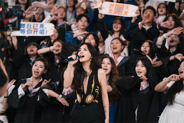 正值毕业季,Ella登上《我们的毕业歌》晚会舞台,在倾盆大雨中扔掉雨伞潇洒演唱《不想长大》《中国话》《Super Star》等诸多金曲,串联共鸣青春记忆。