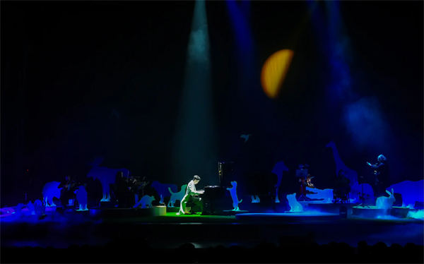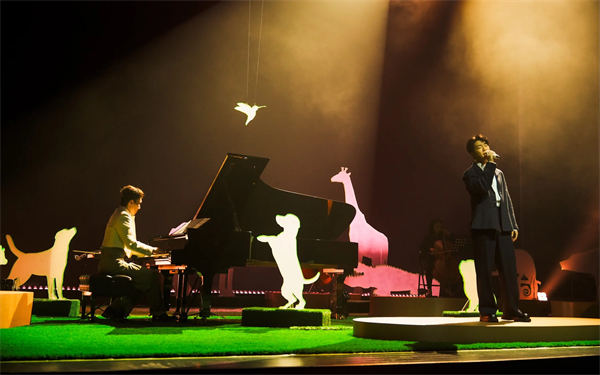 《月光动物园》音乐会以四个乐章展开:月光、银河、深夜与拂晓,把阿龚不同时期的作品串成一段在夜色中前行的旅程。开场曲《The Moonlight Zoo》一下,磅礴的钢琴搭配弦乐五重奏先铺开第一层月色;从《冬 未了》就与苏打绿结下十年情谊的 Bernd 也在这首作品中担任指挥,并亲自吹起萨克斯风,用交响乐的气势替整座动物园正式开门。进入钢琴独奏段落,黑白琴键落下,思念便像月光缓缓渗进剧场。《Fade, fade away》、《Stairway to Light》等新专辑中的动人作品接连登场,不少观众还没坐暖就已悄悄拭起眼泪。全场编排序穿于钢琴+五重奏的层次堆叠、钢琴与管乐的友情对话,与节奏活泼的中提琴小品之间,让立冬的北京夜在音符里显得既缤纷又柔软。