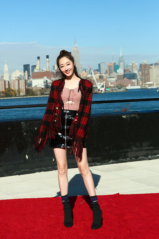 秀网娱乐讯,纽约当地时间11月9日,人气小花旦蒋梦婕携手实力演员李易峰、江疏影、胡宇威等主创亮相青春励志大剧《在纽约》海外开机仪式。当日,蒋梦婕身着黑色皮裙搭配红色格纹外套,青春洋溢,一双大长腿分外抢镜。