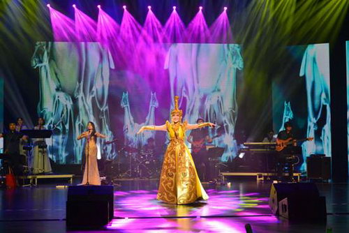 宜兴保利大剧院人声鼎沸,看台层层爆满,现场气氛热烈,观众热情欢呼,首首耳熟能详的草原金曲总能引发全场大合唱……无论是空前绝后的草原神曲《套马杆》、表现蒙古族姑娘火辣辣情怀的《火辣辣的情歌》,还是展现草原“凤也醉,人也醉”人间绝美情境的《凤凰飞》,乌兰图雅的每一首作品都尝试融合了民族精华和国际时尚的新民风音乐,俨然成就了民族流行音乐的另一典范。
