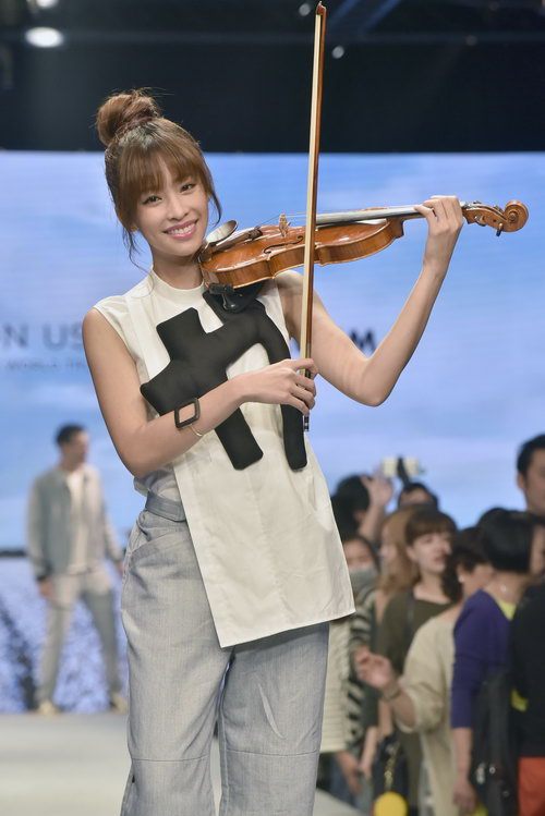 当天在舞台上,Cindy用小提琴演奏作为开场,以悠扬琴声搭配吉他演奏知名英文老歌《What a wonderful World》,展现出温婉轻柔的一面。演唱一结束又带领众模特儿们走向伸展台,惊艳全场。