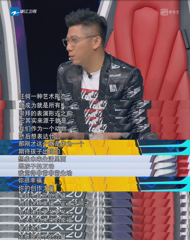 “你的创作能力来自于你的幸福。这种幸福一定会通过刚才传递给更多更多人,让大家对未来的幸福更有希望,这就是音乐的力量”