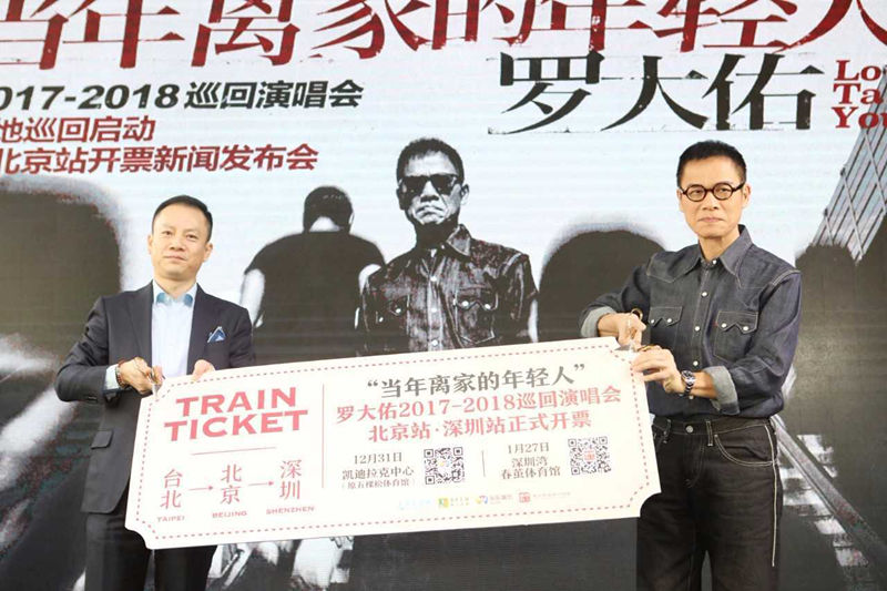 记者会的高潮部分,罗大佑与种子音乐CEO吴锋一起推动火车头推杆,吴锋表示:“种子音乐非常荣幸能成为大佑哥演唱会的全程主办,我们将为歌迷呈现最完美的音乐现场。同时,热烈祝贺大佑哥内地巡演正式开票,也预祝大佑哥演唱会圆满成功!”火车鸣笛声响起,充满仪式感,象征着内地巡演正式开跑。随后,罗大佑与永乐演艺CEO张春晓共同进行了“台北——北京——深圳”火车票的检票仪式,象征了首站北京站和深圳站的正式开票,这辆火车也将陆续开到上海、广州、成都、大连等城市,足迹将遍布全国。