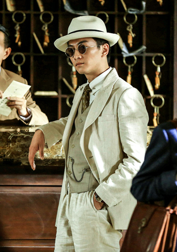 剧情里,肖君浩从日本留学归来,一身浅卡其的西装和小礼帽搭配酷酷的小圆墨镜,举手投足间都散发着风流倜傥的迷人气质。短短的几分钟内,肖君浩就熟练使用了三国语言,他的身份也勾起了观众们的好奇心。