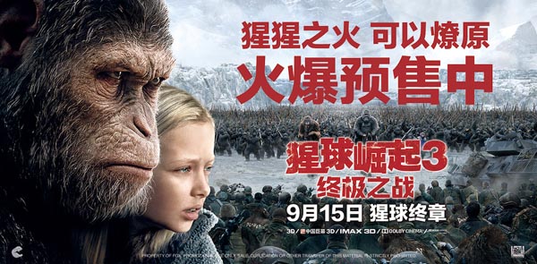 一首中国推广曲包含了这么多名堂,你可感受到了来自“猩球帝国”的满满诚意?9月15日,《猩球崛起3》在影院“躺好”等着你来喔!