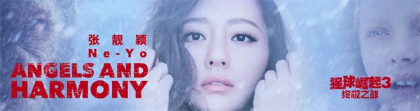 片方特别邀来华语歌坛实力唱将张靓颖,与手捧三座格莱美奖杯的北美音乐大咖Ne-Yo共同演绎歌曲《Angels and Harmony》,Ne-Yo更是亲自作词参与创作,这也是两人首次共同录音。继《终结者5》《007:幽灵党》《长城》之后,张靓颖已是第四度以全英文曲目助阵国际大片。对于这次为《猩球崛起3》演绎中国区推广曲,她表示:“非常开心有机会给这一部这么棒的集口碑与市场共有的电影来演唱,这次也是跟Ne-Yo的第一次合唱,是非常特别和有意义的一次。”