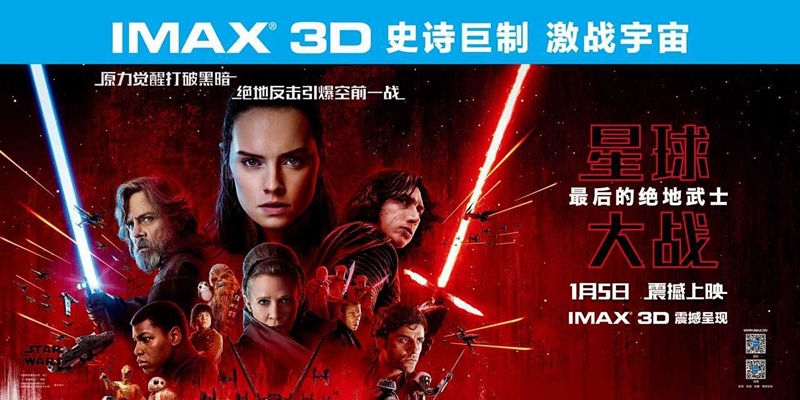 《星球大战:最后的绝地武士》自12月15日在海外上映后,一路巩固其票房的霸主地位。 在海外市场,IMAX不仅提前场坐收530万美元,上映首周末更斩获4060万美元的票房佳绩,创造了IMAX有史以来仅次于《星球大战:原力觉醒》的提前场和开片首周末全球(除中国市场外)票房成绩。