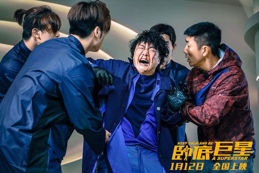 终极海报中,陈奕迅与李荣浩为“小金人”争得头破血流,身后的李一桐、陈国坤、崔志佳则是或紧张或幸灾乐祸地围观“战况”,配合着终极预告中的细节,电影的人物关系与故事主线开始逐渐清晰:李荣浩饰演的香港警方卧底“铁柱”,同时也是陈奕迅饰演的功夫巨星“元豹”的铁杆迷弟,为了洗脱偶像的贩毒嫌疑,于是潜入元豹新剧组,配合警方收集证据。“巨星”与“卧底”之间,经历一系列 “娱乐圈内幕”“黑道风云”后,从敌对最终变成好兄弟。