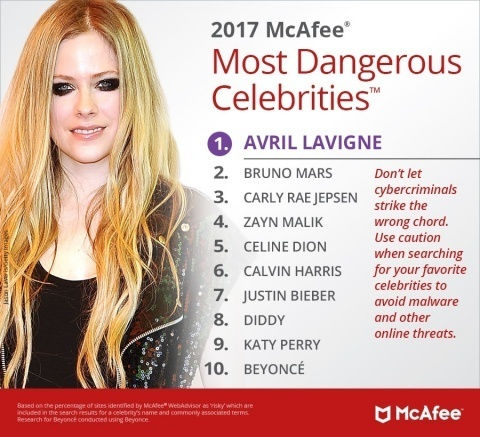 艾薇儿登顶全球危险人物 因搜索其名字或感染病毒