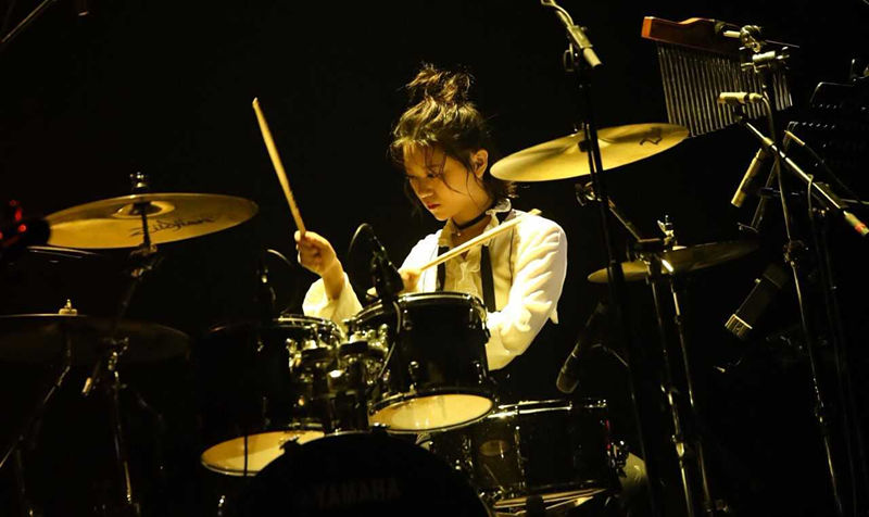 文艺少女上演架子鼓首秀与粉丝互动添暖意
