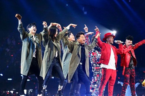 当晚,南征北战NZBZ身着红色战袍,与众主演齐齐登台,轻快活泼的曲风令现场气氛一度达到高潮。演唱期间,南征北战NZBZ与王宝强和刘昊然、肖央大跳扭腰舞,新年新姿势,扭掉不开心!