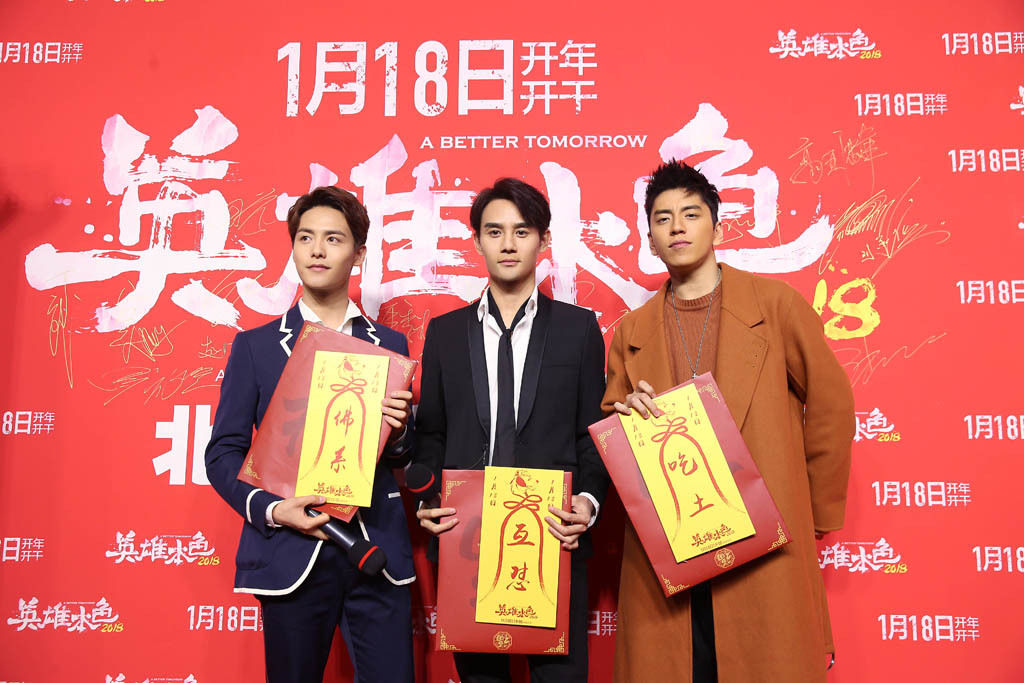 作为开年即将上映的动作戏,《英雄本色2018》上演三人“兄弟情”一直是一个受观众期待的亮点。在欢迎礼上,片中饰演三兄弟的王凯(饰演周凯)、马天宇(饰演周超)、王大凯(饰演马柯)“相爱相杀”也携手出现。作为大哥的王凯自称,平时他和王大陆两个人合力都“怼”不过口齿伶俐的马天宇。但马天宇似乎并不满意这样的“抹黑”,机智反驳:自己其实是无欲无求、逆来顺受的“佛系”少年。此次三人皆塑造了全新风格的银幕硬汉形象,特别是对于王大陆饰演的“小马哥”,很多观众在上映之前就表示相当期待,在这次活动上,王大陆也专程带了爸爸妈妈来一起观赏自己的表演。