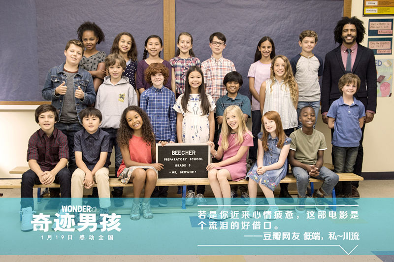 影片《奇迹男孩》在专业电影评论网站IMDb上评分高达8.1,烂番茄新鲜度达到86%,豆瓣给出8.6的高分。在此前片方举办的全国百场超前点映中,上万名购票观众打出了猫眼9.1,淘票票9.2的高分。《奇迹男孩》以一个天生面部畸形的小男孩奥吉为主角,在娓娓道来他成长过程的同时,又刻画出他身边家人、朋友的心理活动,多线索的叙事模式让影迷们大呼惊喜,“通过不同角色的视角展现故事,更加客观也让不同的观众都能找到共鸣,每个人都能在其中找到自己的影子”“使得影片免于流俗,这种隐忍、克制、恰到好处的情感太戳人了”“从第10分钟就开始泪目,不做作反而更加打动人心”等真挚赞誉不绝于耳。暖心励志的故事与正向积极的情感内涵,使这部电影成为今冬全家观影的不二之选。