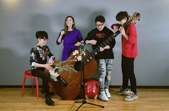 秀网娱乐讯,上周末,李行亮通过视频在《快乐大本营》中惊喜亮相,和刘心、陈翔、潘辰三位好友组建临时乐队,一起挑战弹奏世界上最大的尤克里里。四人不仅挑战成功,还用巨型尤克里里别出心栽的为众人献上了经典歌曲《给我一个吻》。