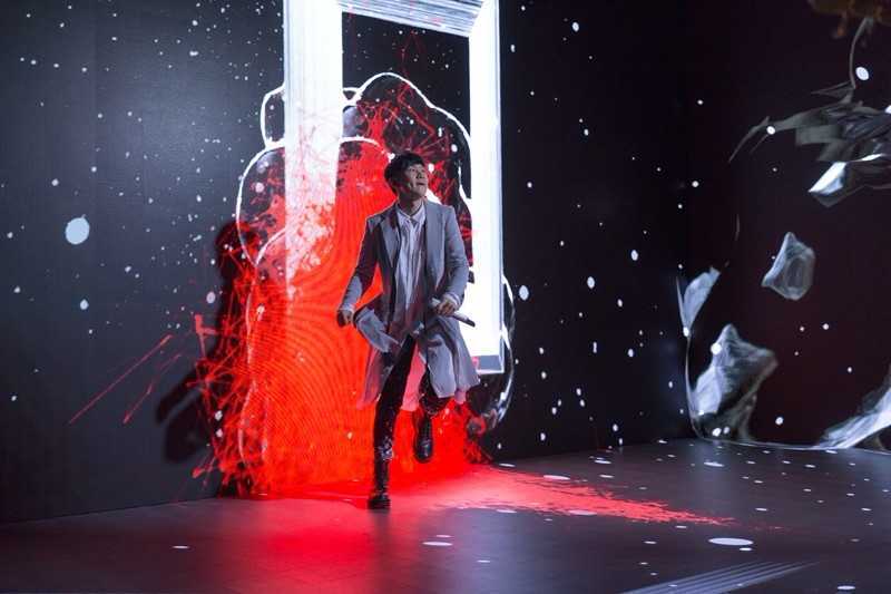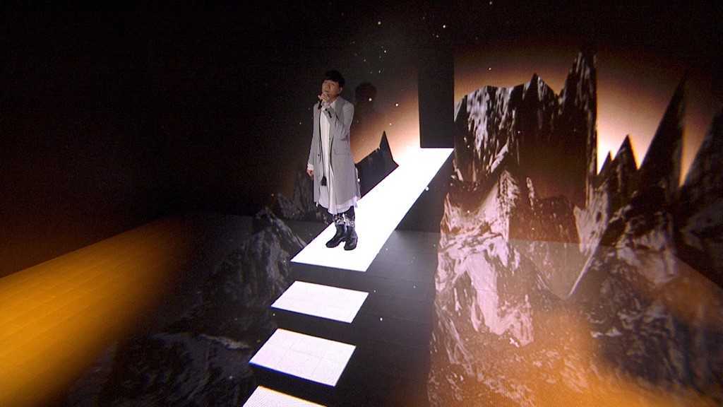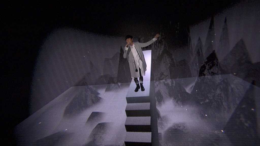 当天JJ一登场,就率先出现在户外天台演唱《圣所》,背景更竖立着代表专辑精神的Logo,紧接着,JJ带领身旁的舞者从电梯一路走向主舞台—“JFJ圣所”,宣告着这场演出正式开始!而JJ也一连演唱新专辑中的《穿越》、《四点四十四》、《黑夜问白天》...等歌曲。而这次视觉也搭配着歌曲意境变化,不但使用“JFJ圣所”从头到脚的全LED荧幕制造视觉假象,更出动AR特效呈现真假难辨的3D立体画面,一度让人误以为JJ站在悬崖上,线上观众直呼为他捏把冷汗!此外,这次同样也出动互动式视觉,让JJ与动画中的虚拟舞者跳舞,精彩视觉让观众纷纷在网络上留言表示看的目不转睛。