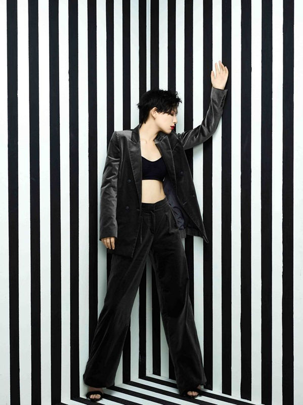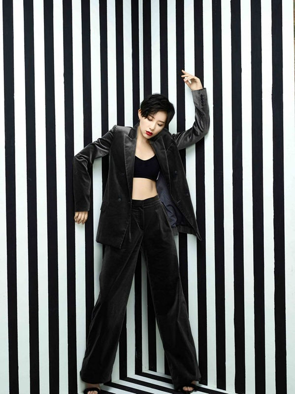 秀网娱乐讯,李斯丹妮今日曝光一组时尚大片!黑灰作为穿搭基调,宽松西装内搭超短背心,大展迷人腹肌。整体造型与她的红唇相互呼应,没有首饰的点缀,在黑白条纹简约背景下,散发出奢华却不张扬的气息。