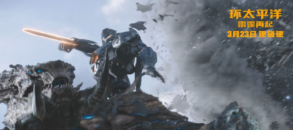 电影《环太平洋:雷霆再起》由美国传奇影业、美国环球影业和善为影业联合出品,斯蒂文·S·迪奈特执导,约翰·博耶加、斯科特·伊斯特伍德、景甜、卡莉·史派妮、菊地凛子、伯恩·戈曼、亚德里亚·霍纳、张晋、查理·戴、黄恺杰、吉丽、蓝盈莹、于小伟、陈梓童等联袂主演,将以2D、3D、中国巨幕、IMAX、杜比影院、杜比全景声、临境音以及4D制式于3月23日登陆全国影院。
