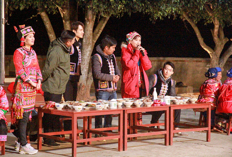 节目中,胡静等人到达马路寨村后便积极投入扶贫工作中,了解到贫困关键在于村民们的守旧思想。他们快速商议后决定以“吃”会友,从吃开始融入当地村民的生活,在当天晚上便参加了当地热闹的杀猪宴,小分队的公益大使们从搬桌子到整理碗筷,全程与村民们开心互动,穿上当地服饰,吃喝间隙相聊甚欢。
