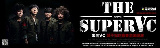 在果味VC“躁不完的青春”全国巡演第二季中,果味VC除了演唱新专辑《THE SUPERVC》中的歌曲外,也会将《优雅》、《我带你去看海的路上》、《生命之花》、《夜空多灿烂》、《超音速列车》等经典曲目全新编曲,以最现场直接的、耳目一新的方式呈现在大家眼前。
