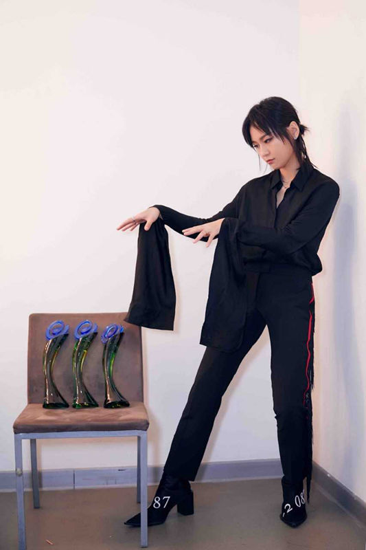 周笔畅身穿Yang Li 2018 FW亮黑风衣出席颁奖典礼,棱角利落的外套和短靴,彰显周笔畅冷酷质感。搭配ENZO心形珠宝配饰,点缀伶俐气质。在群星争艳的颁奖礼上以“一身黑”装扮亮相,相当“Not Typical”!当晚周笔畅一举斩获“最佳女歌手”、“最具影响力演唱会”、“全民选择女歌手”三奖,在东方风云榜的舞台上累计收获了19个奖项,打破了此前孙楠17次的最高获奖纪录!这也是周笔畅个人的第29座最佳女歌手的奖项,近五年周笔畅发行3张专辑、举办16场演唱会、举办2场公益音乐会,凭音乐强能开启扫奖模式,一展“大满贯”女歌手强劲实力!