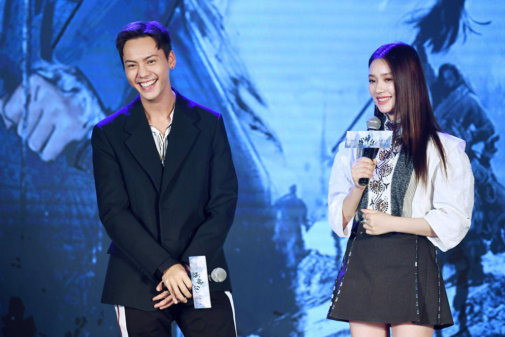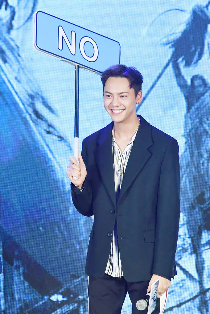 在当日的发布会上,游戏环节猛料频出、惊喜不断,在“笑起来像地主家的傻儿子”、“不爱美人爱宝马”等尖锐问题轮番轰炸下,在片中饰演传奇英雄的陈伟霆俏皮回应“我家里都没地我也不傻”,引发满场欢笑。面对“爱吃老干妈”、“陈伟霆爱马胜过孛尔帖”等问题,林允大笑吐槽真正爱吃老干妈的是星爷,她生日蛋糕旁边的老干妈就是星爷的,而针对陈伟霆爱马胜过孛尔帖的问题,她表示拍戏时,陈伟霆跟马相处的时间确实比她多,细心的她还注意到陈伟霆的马有空气刘海,让人忍俊不禁。而在后面的掷骰子环节,乘胜追击的林允更连续抽中犀利问题“为难”陈伟霆,被逼无奈的陈伟霆爆料林允不愿拍吻戏,没想到很快就遭到了反击,原来更大的料是当时有一场吻戏,林允不想拍但导演要求必须拍。为了让林允尽快适应,陈伟霆还特意找来“吻戏”小视频,亲自教学完成拍摄。