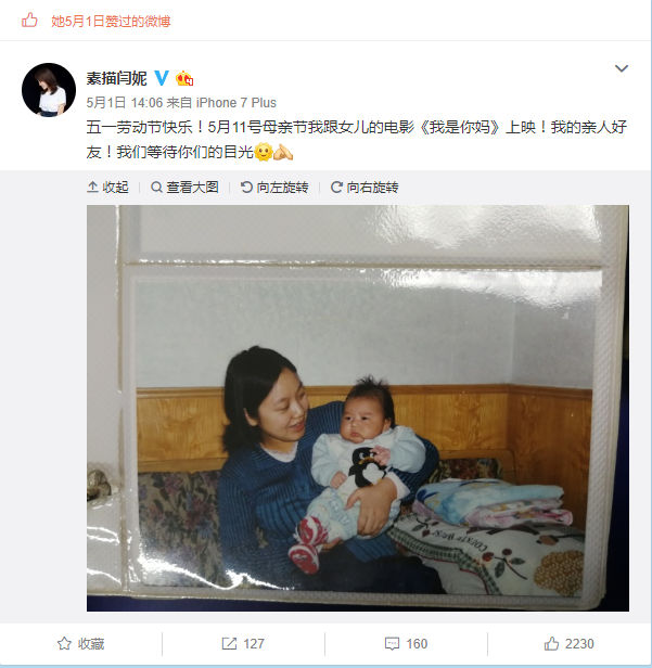 亲母女打造“母亲节专属感动”闫妮晒“初为人母”老照片为电影打call
