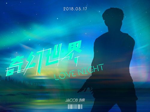 近日,Jacob张朋透过个人和公司官方微博账号公开了新歌《奇幻世界 Love Night》预告图,配文:“我的奇幻世界,终于等到你!20180517,与你共赴LoveNight之约”邀请粉丝共赴音乐之约。而公开的预告照风格迷幻,色彩绚丽丰富的背景下,张朋的背影轮廓若隐若现,让人对歌曲的风格与张朋此次的Solo造型不禁充满好奇。与此同时,张朋也公开了自己在练习室排练的图片,表示正在为新歌苦练舞蹈。此前,Jacob张朋在同门师兄陈骁歌曲《骤雨Trouble》中的feature表现,也收获了歌迷的一致好评。