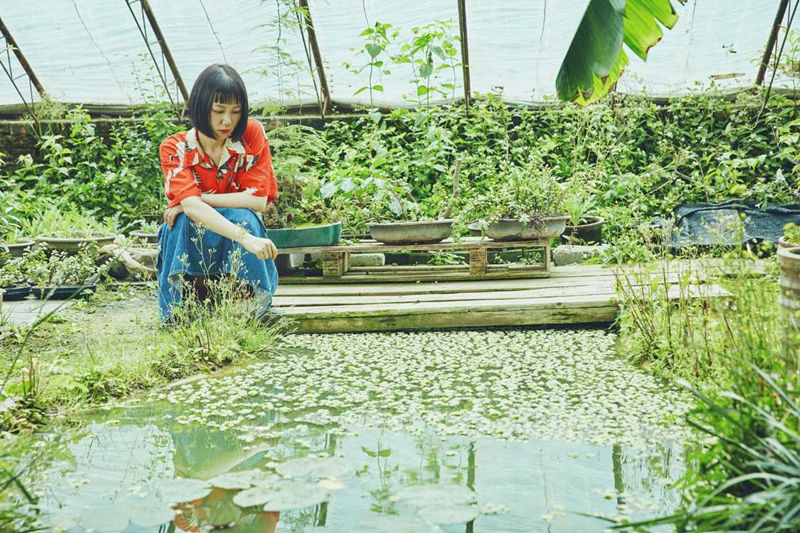 此次曝光的海报里,谢春花变身为清新元气少女,身穿红色仙鹤衬衣与牛仔裙站立于青葱池水边,茂密的绿色植物预示着生命的旺盛。万物生长,以赤子之心感悟生命里的善与美。水中的倒影或是对自我生命的思考,如何打开新篇章,如何在新生活中不重蹈覆辙。生活的喜悦与人生的百味,都在这令人动容的自然之中。