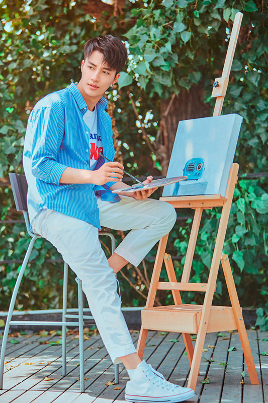 照片中,王燕阳身穿海蓝衬衫与象牙白西裤应和夏日主题清爽干净。期间不时露出阳光温暖的微笑既带着型男的帅气沉稳,亦不缺少男孩子应有的少年青春感。手执画笔时的王燕阳文艺气息满分,微微回眸之间尽显不经意间的悠然自得,轻松娴熟的表现力不禁引人赞叹。