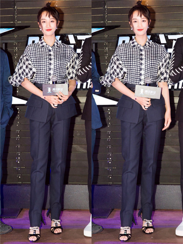蓝盈莹身着复古千鸟格衬衫,搭配个性十足的西装裤出席腾讯影业之夜活动,整体造型时尚简约而又增添了一份肆意随性。在活动现场,由尚敬导演执导的古龙同名武侠小说改编电视剧《欢乐英雄》正式公布主演阵容,由青年演员蓝盈莹担任该剧女主角,此消息一经宣布,就受到大家热议,纷纷表示:非常期待蓝盈莹演喜剧。而这也是她首次挑战喜剧作品,从现场她与其他主创的搞笑互动可以看出,他们之间相处气氛十分融洽。面对如此欢乐的场面,网友们格外期待蓝盈莹在喜剧中的精彩表现。