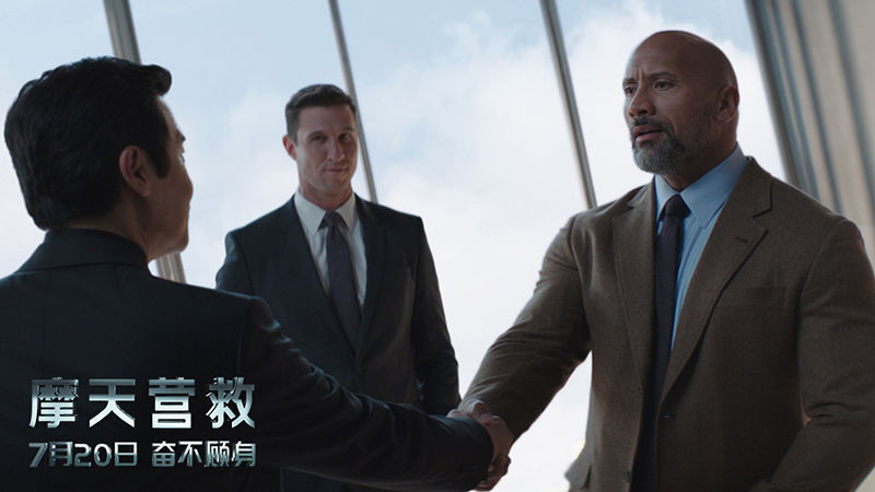 《摩天营救》由美国传奇影业和美国环球影业联合出品、罗森-马歇尔·瑟伯执导,道恩-强森、内芙-坎贝尔、黄经汉、罗兰-默勒、诺亚-泰勒、文峰、巴勃罗-施瑞博尔、昆凌等共同主演,将于7月20日全国公映。