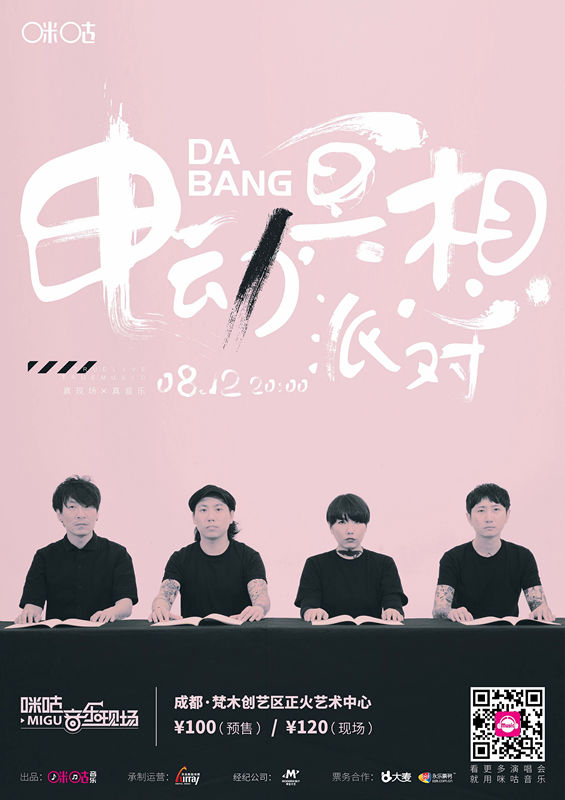 永不停歇的思考让DA BANG长久以来保持着创作的独立性,成为拒绝被定义、被归类的时代“逆行者”。他们的音乐将前卫的电气之音与不羁的摇滚粒子相融以寻求多元可能,极富哲思与批判性的歌词更是令人头皮发麻,激起你内心最深处的回响。