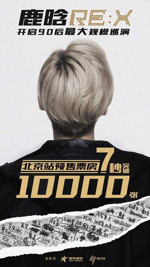 秀网娱乐讯,2018鹿晗《RE:X》巡回演唱会北京站今日正式开启预售,10月6日北京工人体育场首站预售7秒钟售出万张,再次验证了鹿晗的超高人气。自回国后,鹿晗凭借超高人气不断刷新纪录,开启了流量时代。但这一次,鹿晗在微博发布演唱会海报时却说:撕掉一切标签,做个纯粹的歌手。展示了他对音乐的热爱和始终如一的初心。