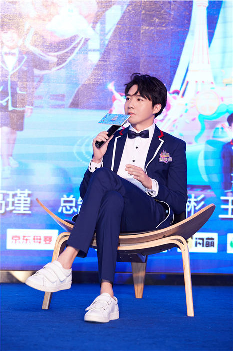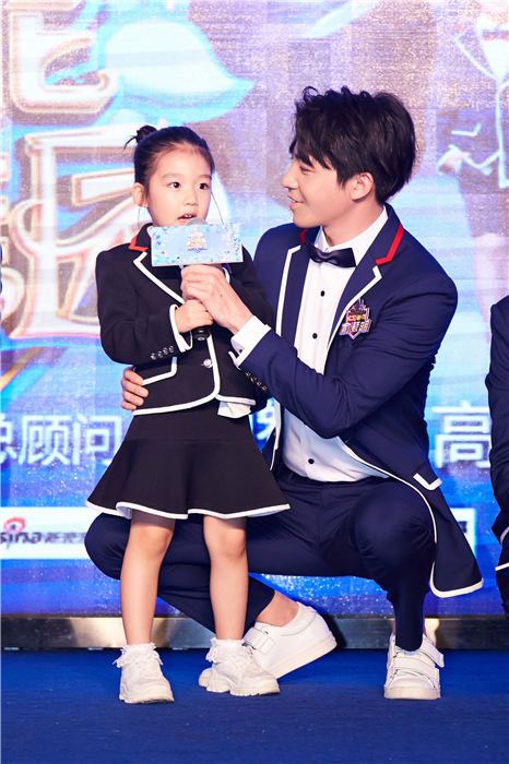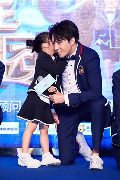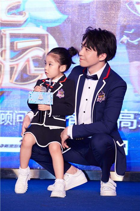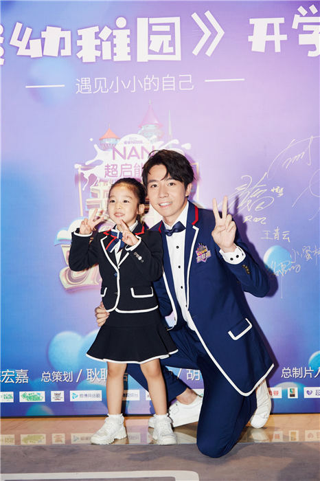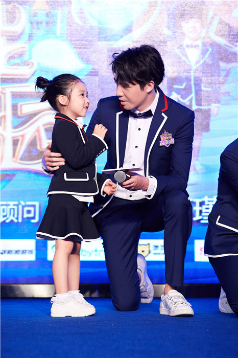 俞灏明《超能幼稚园》发布会和小朋友宠溺互动 校服更显学长气